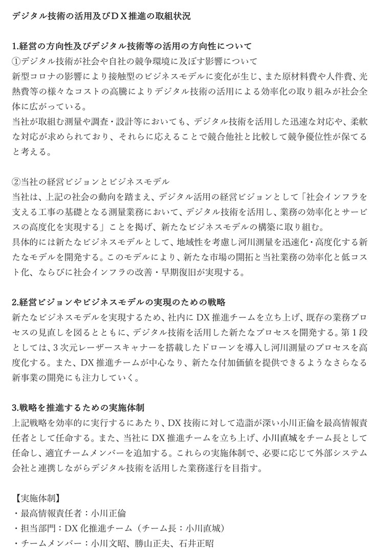 GNSSやトータルステーションを用いた精密な測量に加え、ドローンや3Dレーザースキャナといった最新技術も積極的に導入し、多様化するニーズに柔軟に対応できるよう日々技術の追求を行っております。